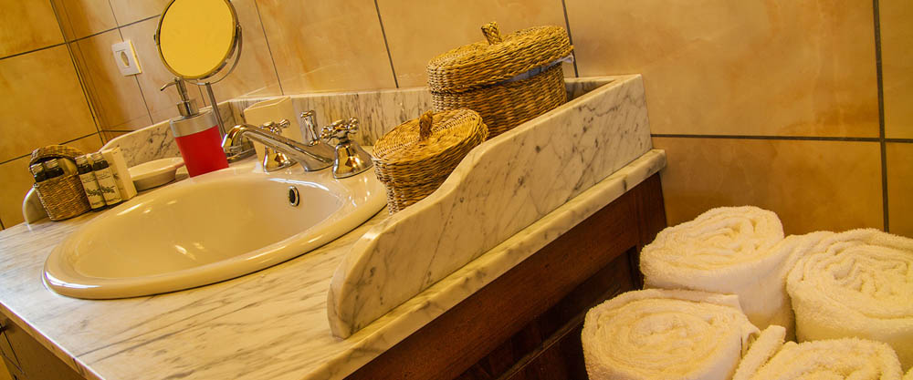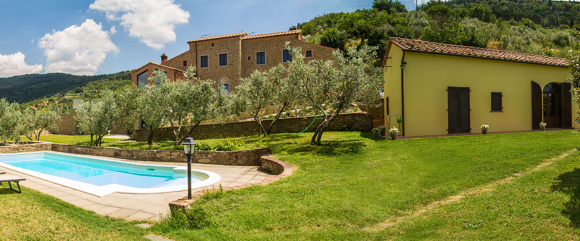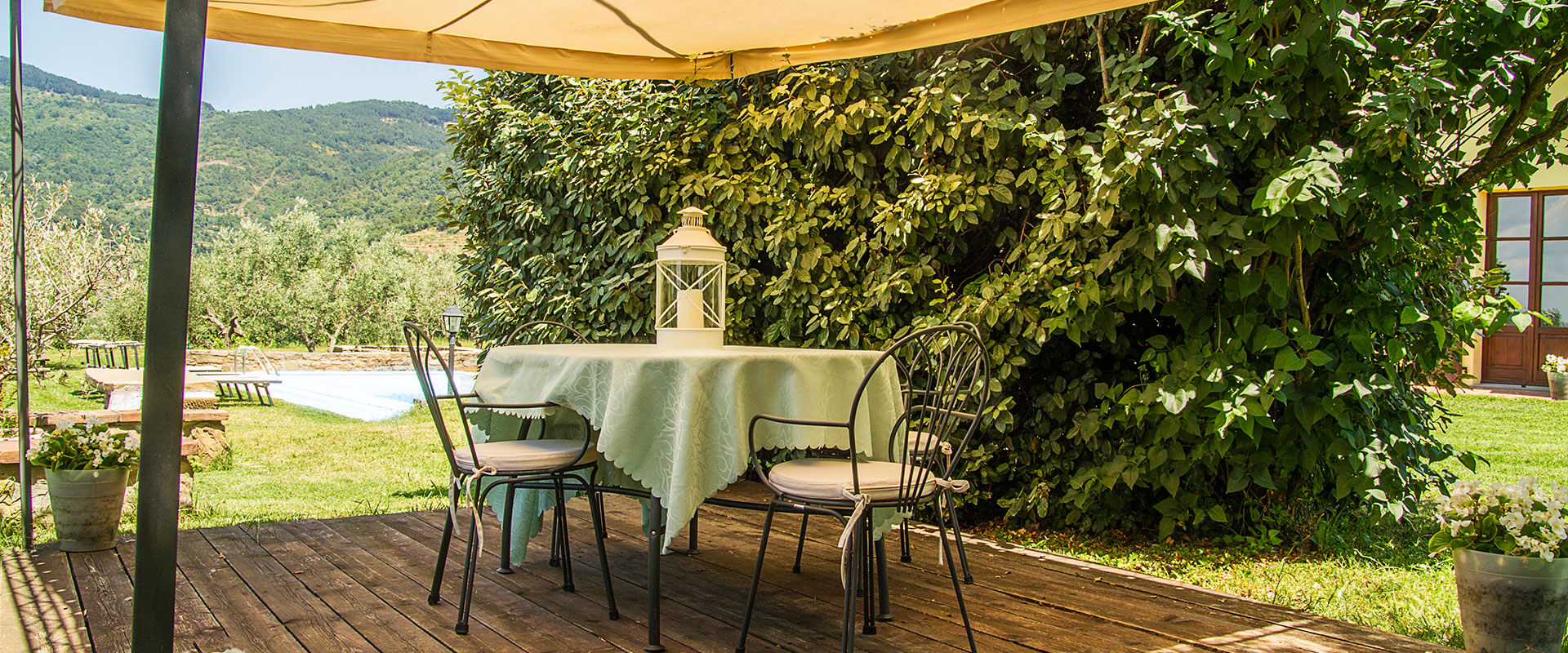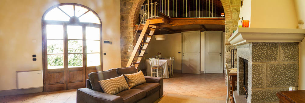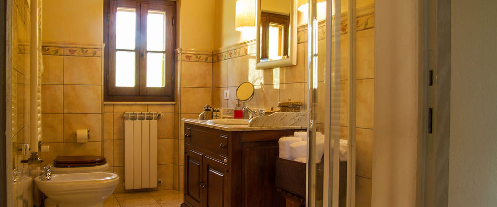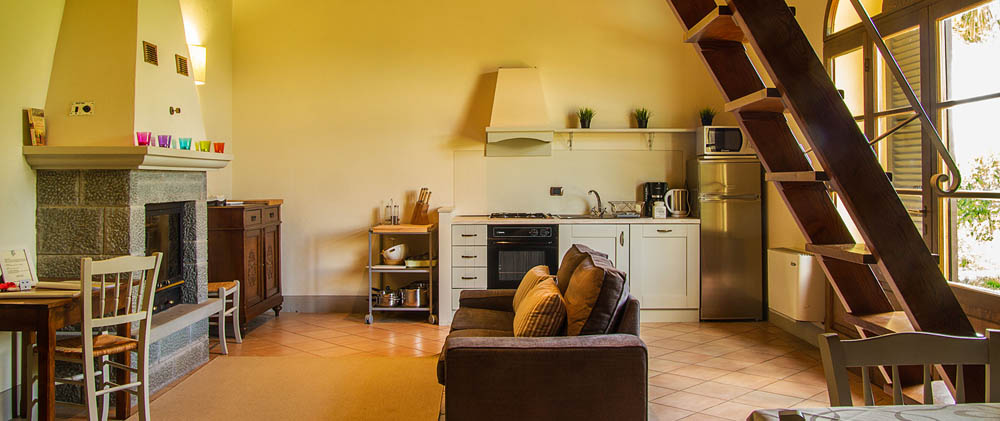 In the charming Orangery are our remaining two rooms, both of which are decorated in a contemporary Tuscan style and furnished with a functional kitchen nook, a living room with traditional fireplace and a spacious bathroom with shower.